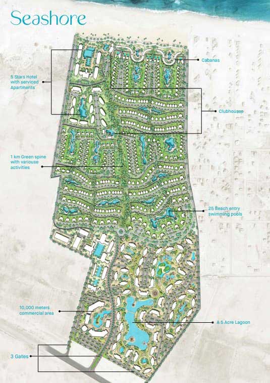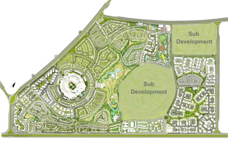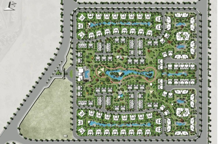 تم تخصيص الجزء الأكبر من المساحة الإجمالية للمشروع للمناطق الخضراء والمسطحات المائية.